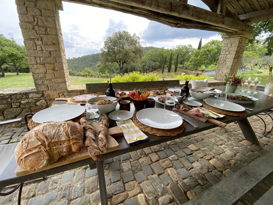 Πάντως, δεν περπατάς εύκολα αυτό τον παράδεισο των 5.000 στρεμμάτων που φυλάσσεται από πρώην SAS, δηλαδή την ελίτ μονάδα των βρετανικών ειδικών δυνάμεων, και είναι γεμάτος από αμπελώνες, λιβάδια όπου καλλιεργείται λεβάντα -ο Πιτ τη λατρεύει-, ελαιώνες, ακόμη και μελίσσια, ενώ τα κτίσματα είναι το λιγότερο εντυπωσιακά.