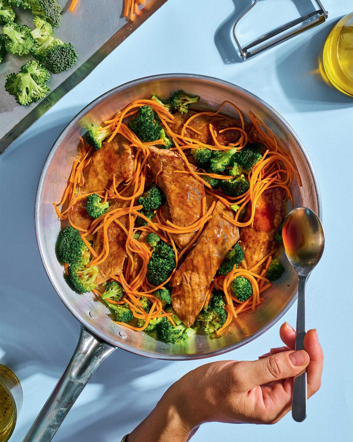 Μοσχαρίσια μπριζόλα με μπρόκολο και καρότα