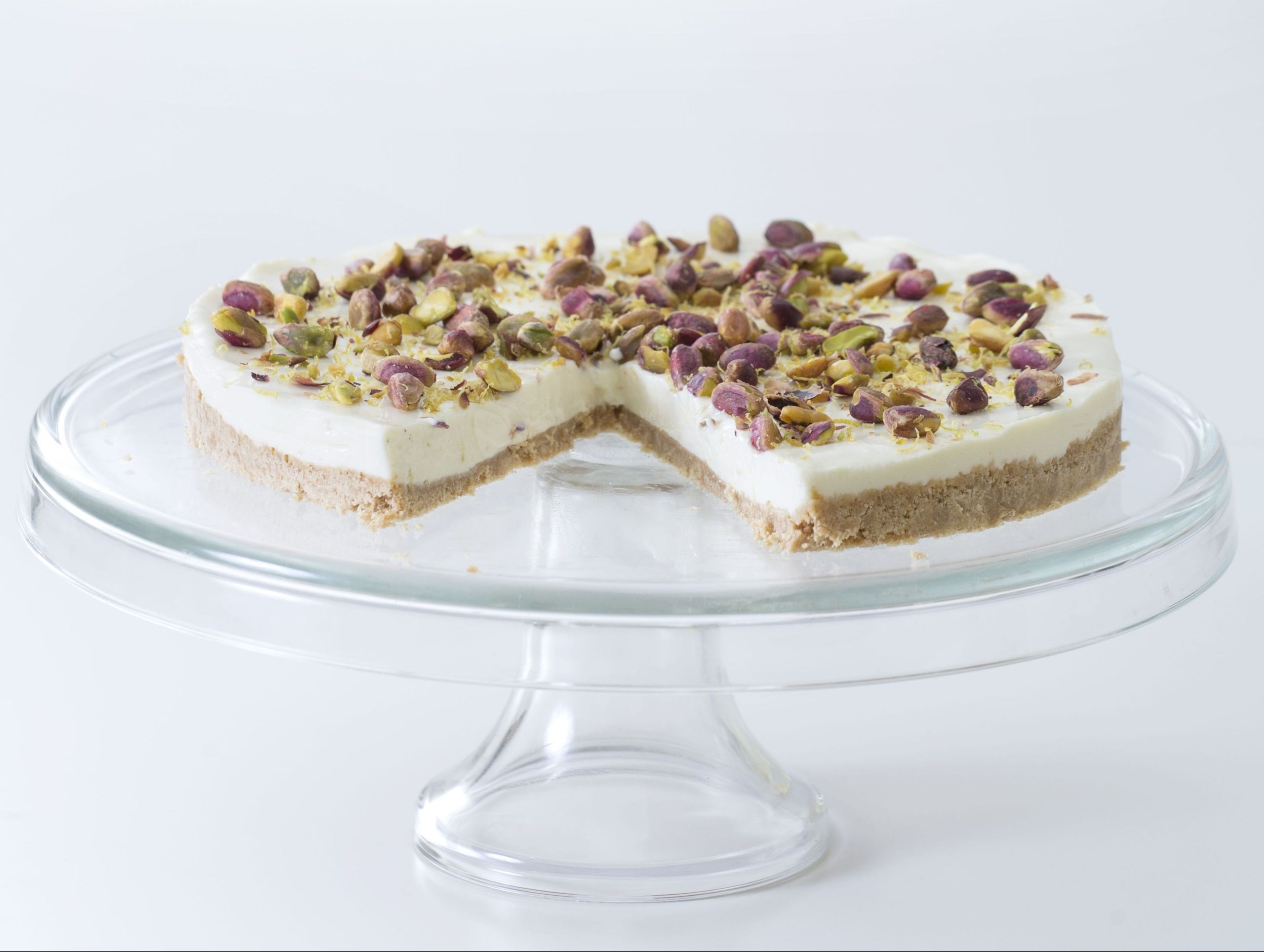 Έχετε όρεξη για ένα γλυκάκι; Σας προτείνουμε ένα δροσερό τσιζκέικ με φιστίκι Αιγίνης.