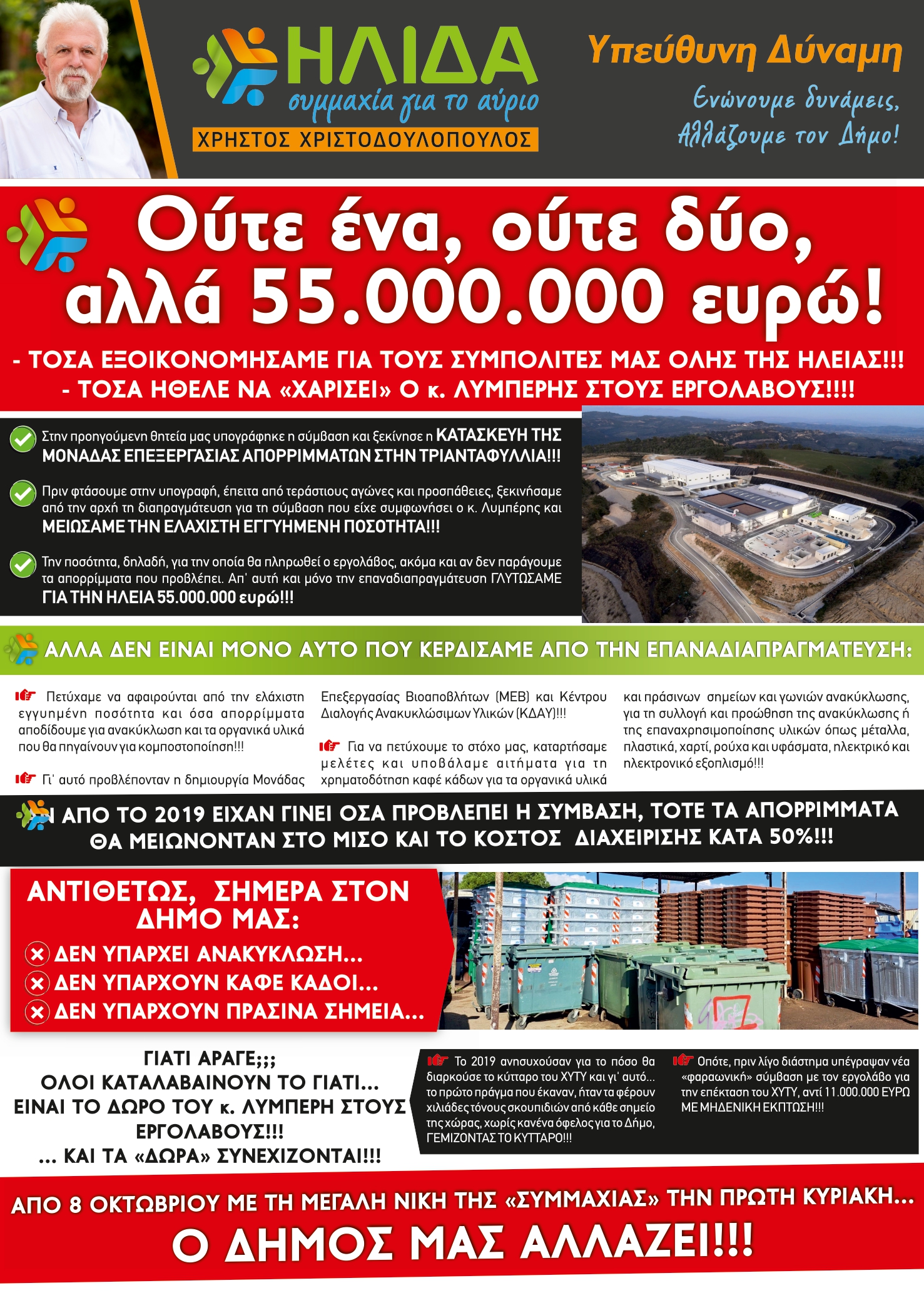 Χριστοδουλόπουλος: ¨Εξοικονομήσαμε 55 εκατ. ευρώ-Θα τα χάριζε ο Λυμπέρης στους εργολάβους¨