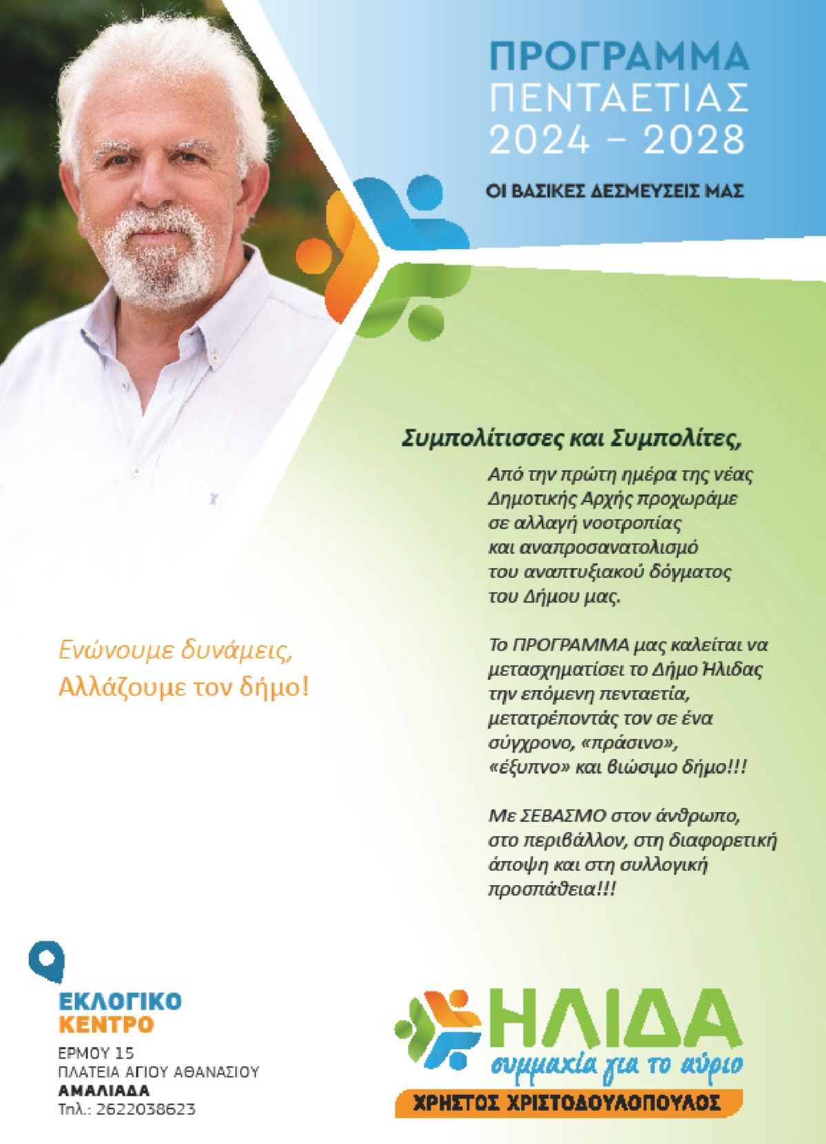 δημοτικού συνδυασμού «Ήλιδα – Συμμαχία για το αύριο», του υποψηφίου Δημάρχου