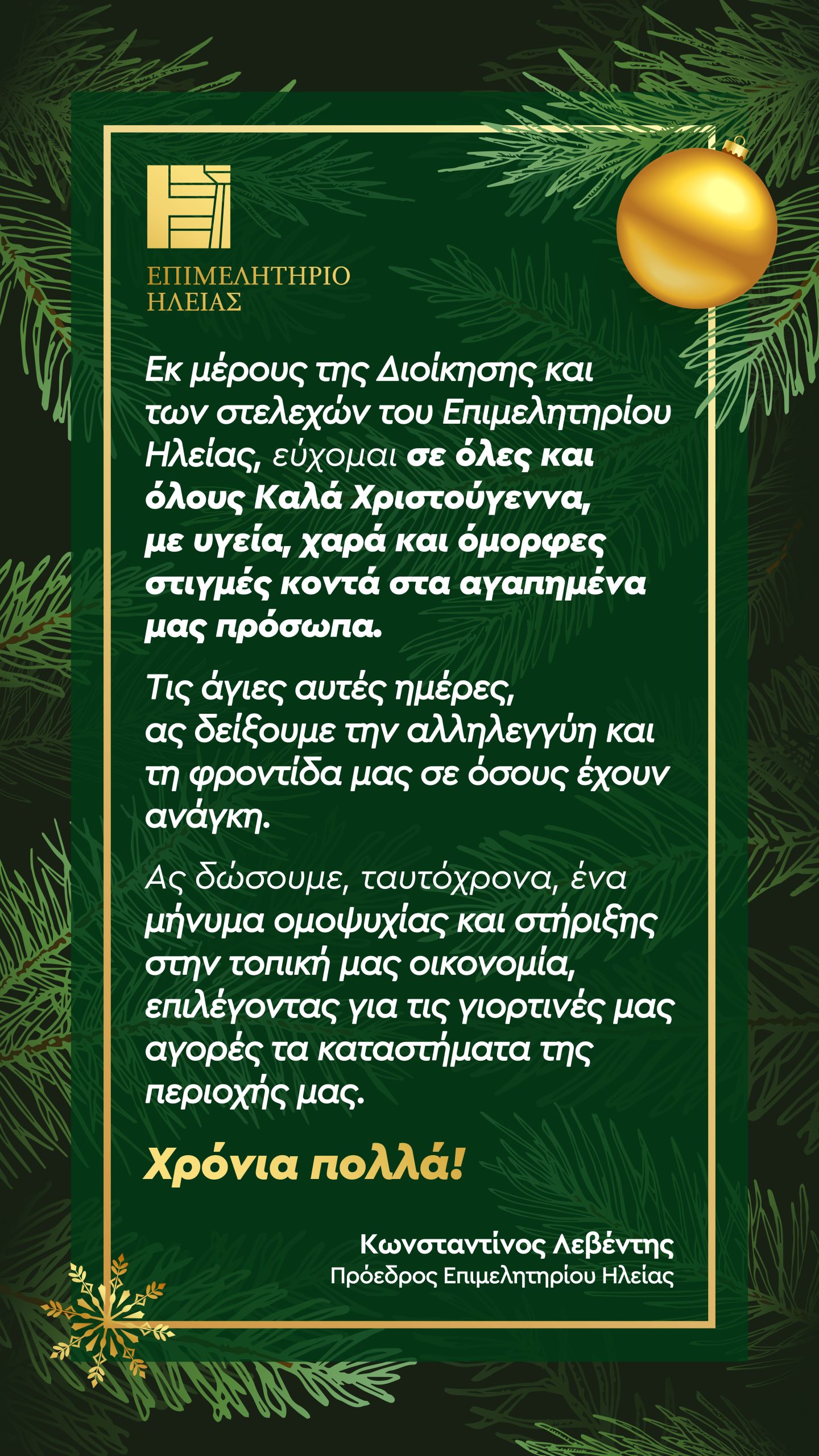 Χριστουγεννιάτικες ευχές από το Επιμελητήριο Ηλείας