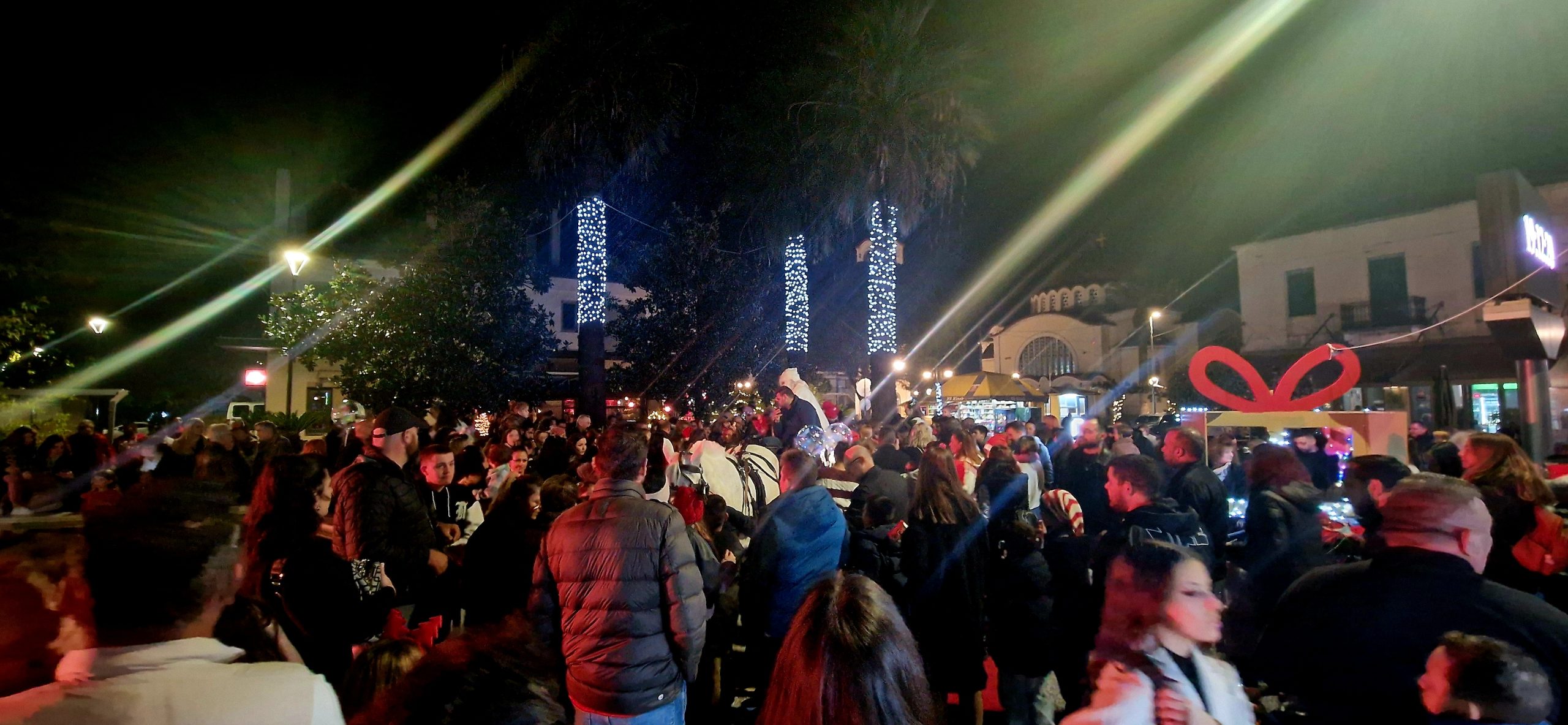Ιδιαίτερη στιγμή της βραδιάς αποτέλεσε η αντίστροφη μέτρηση για τη φωταγώγηση του χριστουγεννιάτικου δέντρου, η οποία κορυφώθηκε με εντυπωσιακά πυροτεχνήματα, γεμίζοντας τον ουρανό με φως και χρώματα. Η εμφάνιση του Άγιου Βασίλη έφερε ακόμη περισσότερη χαρά, καθώς μοίρασε δώρα και ευχές, σκορπίζοντας χαμόγελα και ενθουσιασμό σε παιδιά και ενήλικες.