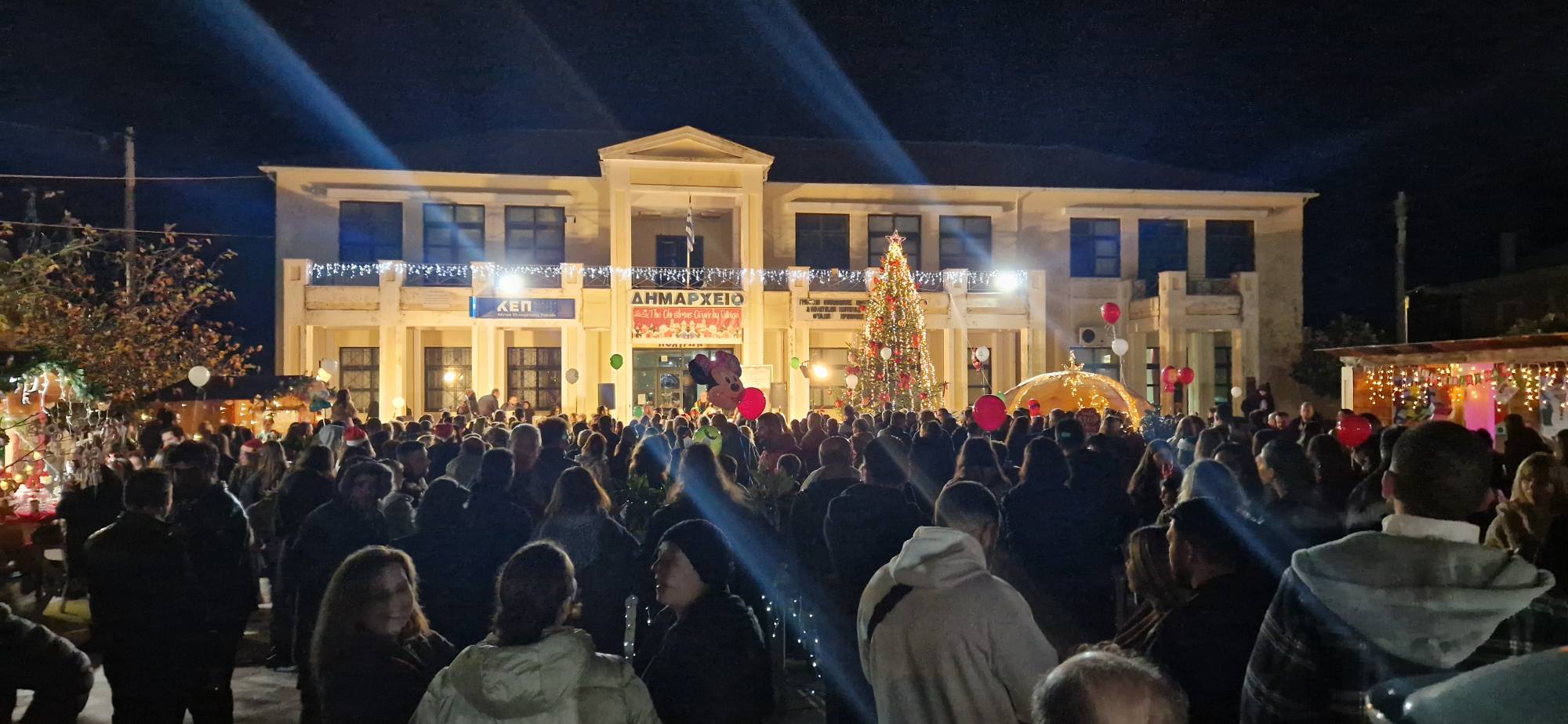 Πλήθος κόσμου πλημμύρισε την πλατεία σε μία ιδιαίτερη εκδήλωση που συνδύασε μοναδικά μουσική, χορό και δράσεις για όλη την οικογένεια, δημιουργώντας μια ζεστή και εορταστική ατμόσφαιρα. Το εορταστικό πρόγραμμα που ετοίμασε η ομάδα Crunchy ήταν πλούσιο και πολυσύνθετο, με εναλλαγές που κράτησαν αμείωτο το ενδιαφέρον του κοινού καθ’ όλη τη διάρκεια της βραδιάς. Η εκδήλωση ξεκίνησε με εορταστικές μελωδίες, δίνοντας τον τόνο για τη συνέχεια, ενώ οι εμφανίσεις παιδιών και νέων χάρισαν ζωντάνια και ενθουσιασμό, αποσπώντας το θερμό χειροκρότημα των παρευρισκόμενων. Κορυφαία στιγμή αποτέλεσε η φωταγώγηση του χριστουγεννιάτικου δέντρου, που συνοδεύτηκε από εντυπωσιακά πυροτεχνήματα και φωτεινά φαναράκια που πλημμύρισαν τον ουρανό.