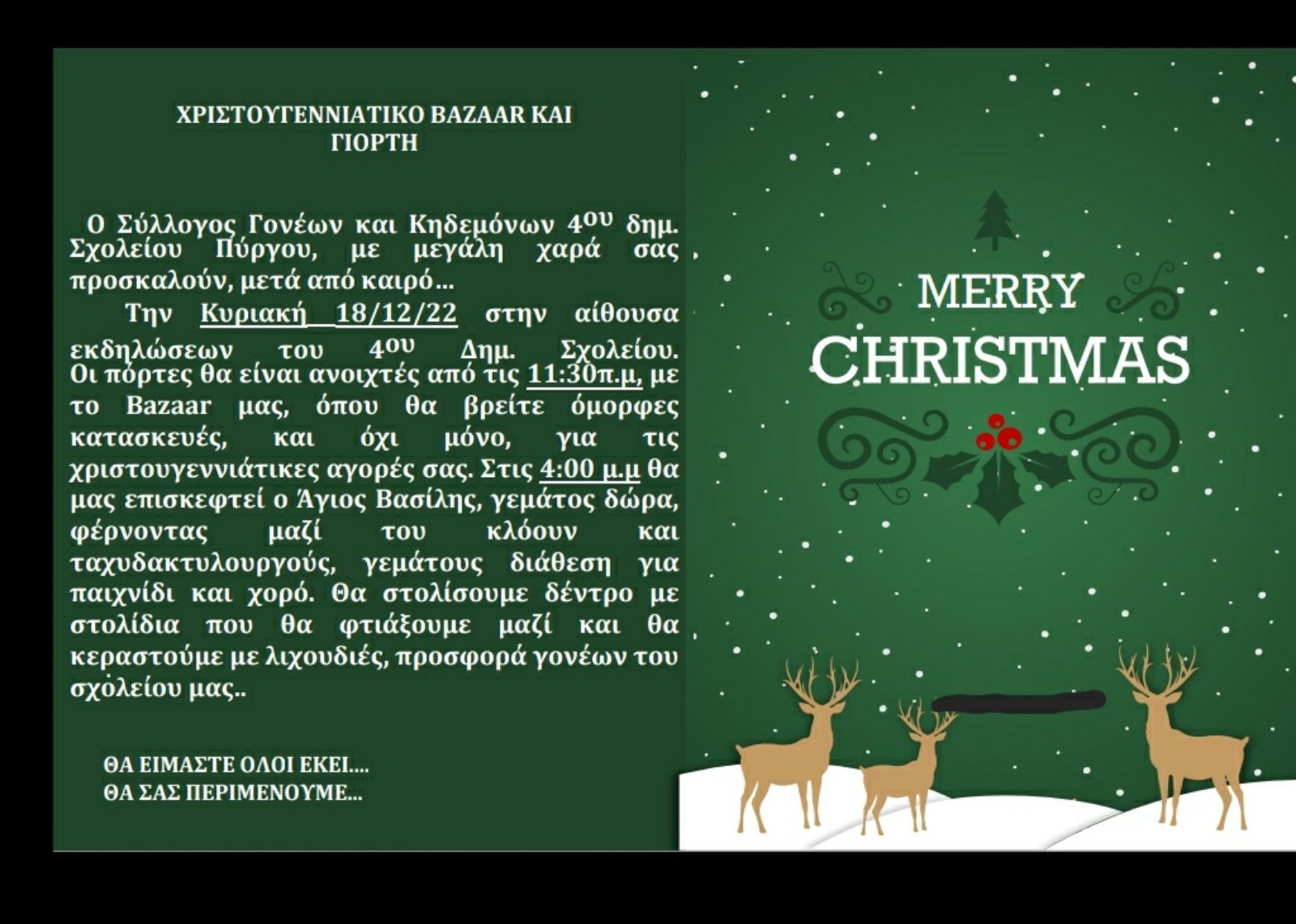 Χριστουγεννιάτικο bazaar και γιορτή απο το 4ο Δημοτικό σχολείο Πύργου