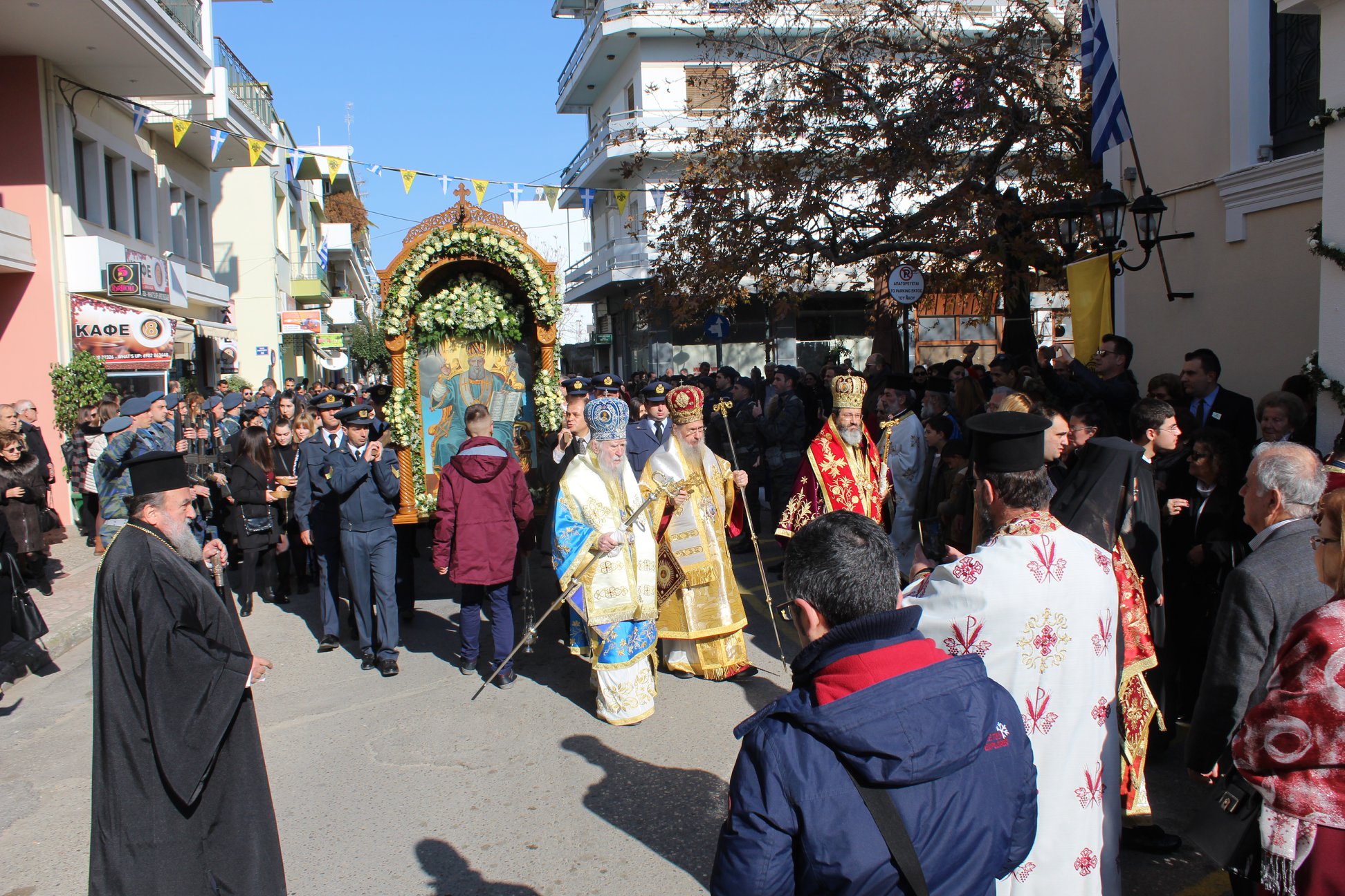 Ακολούθησε η λιτάνευση της Ιεράς Εικόνας σε κεντρικούς δρόμους της Αμαλιάδας, συνοδεία της Φιλαρμονικής Αμαλιάδας και στρατιωτικού αγήματος της Πολεμικής Αεροπορίας, ενώ το «παρών» μεταξύ άλλων έδωσαν οι βουλευτές Κώστας Τζαβάρας, Ανδρέας Νικολακόπουλος, Διονύσιος Καλαματιανός και Μιχάλης Κατρίνης, ο πρώην βουλευτής Γιάννης Κουτσούκος και ο πολιτευτής Ηλείας της Νέας Δημοκρατίας Θεόδωρος Βλαγκούλης, οι αντιπεριφερειάρχες Ηλείας και Αγροτικής Πολιτικής Βασίλης Γιαννόπουλος και Θοδωρής Βασιλόπουλος, Περιφερειακοί Σύμβουλοι, το Δημοτικό Συμβούλιο Ήλιδας, ο δήμαρχος Πηνειού Ανδρέας Μαρίνος, οι εκπρόσωποι των Σωμάτων Ασφαλείας και των Ενόπλων Δυνάμεων και άλλοι.