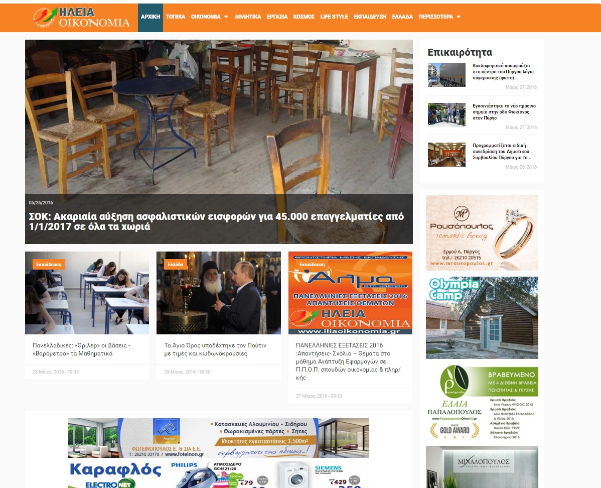Με νέα μορφή συνεχίζει πλέον το ΗΛΕΙΑ ΟΙΚΟΝΟΜΙΑ στον “διαδικτυακό αέρα”. Έχοντας την εμπειρία αλλά και ακολουθώντας την εξέλιξη της τεχνολογίας στην ηλεκτρονική ενημέρωση, η ηλεκτρονική μας εφημερίδα, το ενημερωτικό μας portal γίνεται έτσι ακόμα πιο εύχρηστο και πιο λειτουργικό για όλους, κι ακόμα για tablet και κινητά κ.τ.λ.