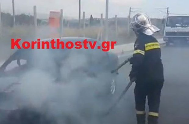 Αυτοκίνητο εν κινήσει πήρε φωτιά πριν από λίγα λεπτά στο 90 χλμ της Ν.Ε.Ο Κορίνθου – Πατρών στο ρεύμα κυκλοφορίας προς Πάτρα στο ύψος της Αρχαίας Κορίνθου.