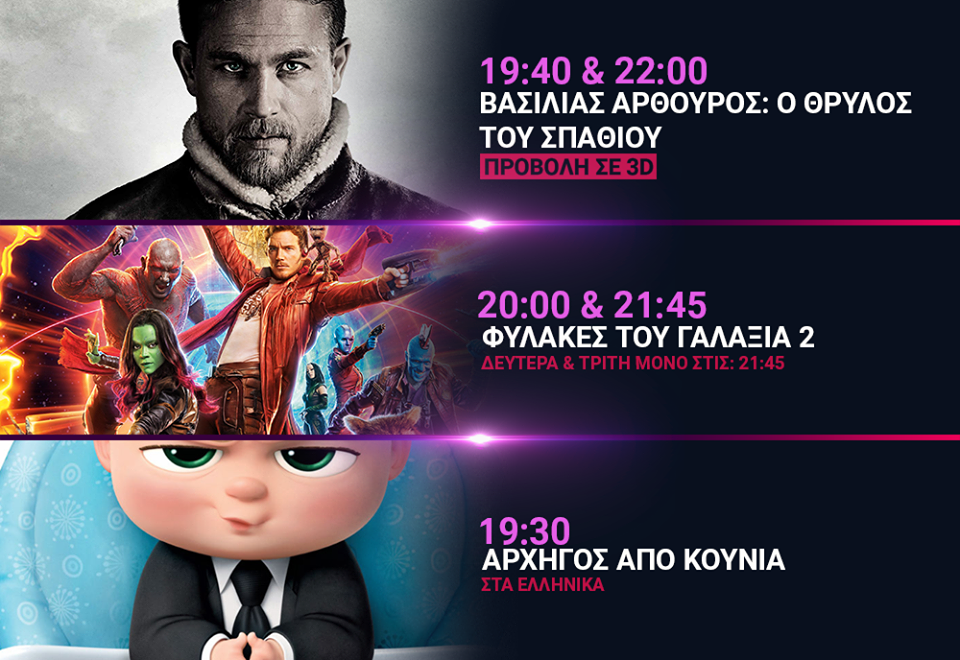 ”Βασιλιάς Αρθούρος: Ο Θρύλος του Σπαθιού.(3D)” Ώρες προβολής: 19:40 & 22:00