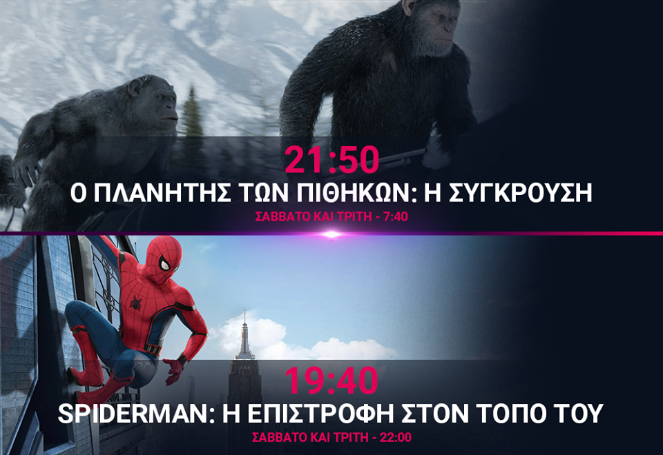 ” Ο ΠΛΑΝΗΤΗΣ ΤΩΝ ΠΙΘΗΚΩΝ: Η ΣΥΓΚΡΟΥΣΗ ” ΩΡΑ : 9.50 Κάθε μέρα (ΕΚΤΟΣ ΣΑΒΒΑΤΟΥ & ΤΡΙΤΗΣ ΩΡΑ: 7.40)