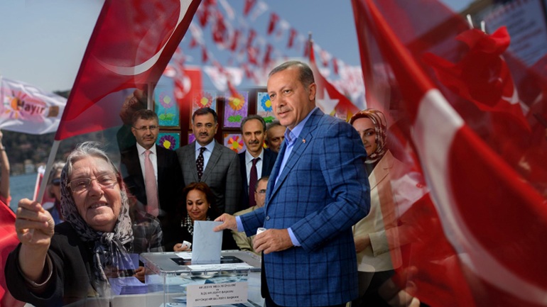 Οι Τούρκοι πολίτες προσέρχονται από τα χαράματα στις κάλπες προκειμένου να αποδεχθούν ή να απορρίψουν εκείνες τις συνταγματικές αλλαγές οι οποίες θα οδηγήσουν την Τουρκική Δημοκρατία σε ένα μυώδες και αυταρχικότερο προεδρικό σύστημα διακυβέρνησης με κατάργηση του θεσμού του πρωθυπουργού.