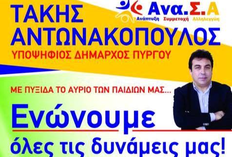 Ο Τάκης Αντωνακόπουλος και η Ανα.Σ.Α άρχισαν επίσημα τον προεκλογικό αγώνα για τον Δήμο Πύργου.