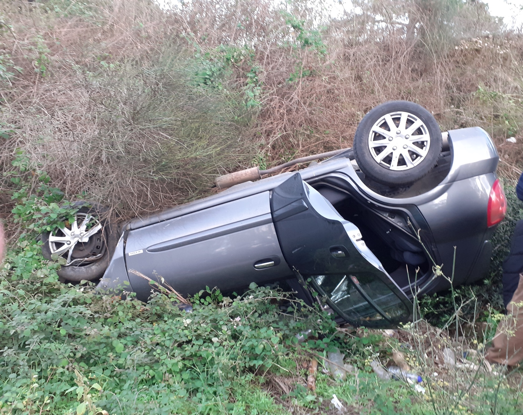 Αυτοκίνητο ΙΧ επιβατικό που κινείτο στην Ε.Ο Πατρών – Πύργου με κατεύθυνση την Πάτρα, στις 17.30 μμ, λίγο μετά την διασταύρωση με την Μανωλάδα, ο οδηγός έχασε τον έλεγχό του, έφυγε από την πορεία του, τούμπαρε και έπεσε σε παρακείμενο μικρό χαντάκι στο πρανές του δρόμου.