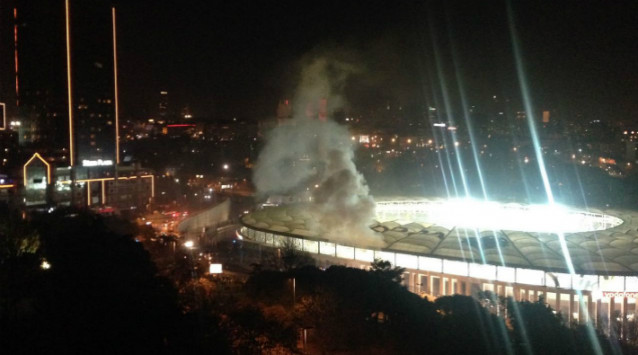 Η αστυνομία έχει αποκλείσει την περιοχή περιμετρικά του σταδίου, ενώ στις εικόνες που μεταδίδουν τουρκικά μέσα μαζικής ενημέρωσης διακρίνεται να έχει ξεσπάσει φωτιά έξω από το στάδιο.