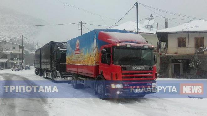 Εγκλωβισμένα φορτηγά και αυτοκίνητα στα Τριπόταμα – Κλειστή η “111”