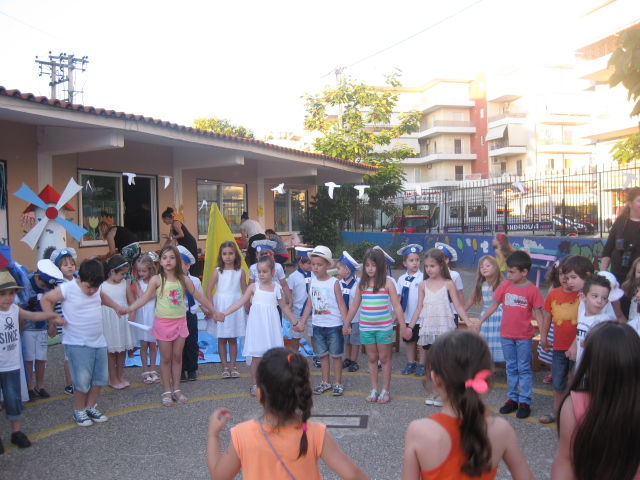 Ψαράδες, καβουράκια,γλάροι, παγωτατζής και οι παραθεριστές που απολάμβαναν τις καθαρές παραλίες ήταν το πρώτο θέμα της παράστασης, περνώντας και το μήνυμα της ανακύκλωσης και της καθαριότητας των παραλιών. Στο δεύτερο μέρος της γιορτής οι μικροί μαθητές παρουσίασαν την Ελλάδα με τις ομορφιές που έχουν τα νησιά της και η παράσταση έκλεισε με τα ναυτάκια που σάλπαραν για νέες περιπέτειες.