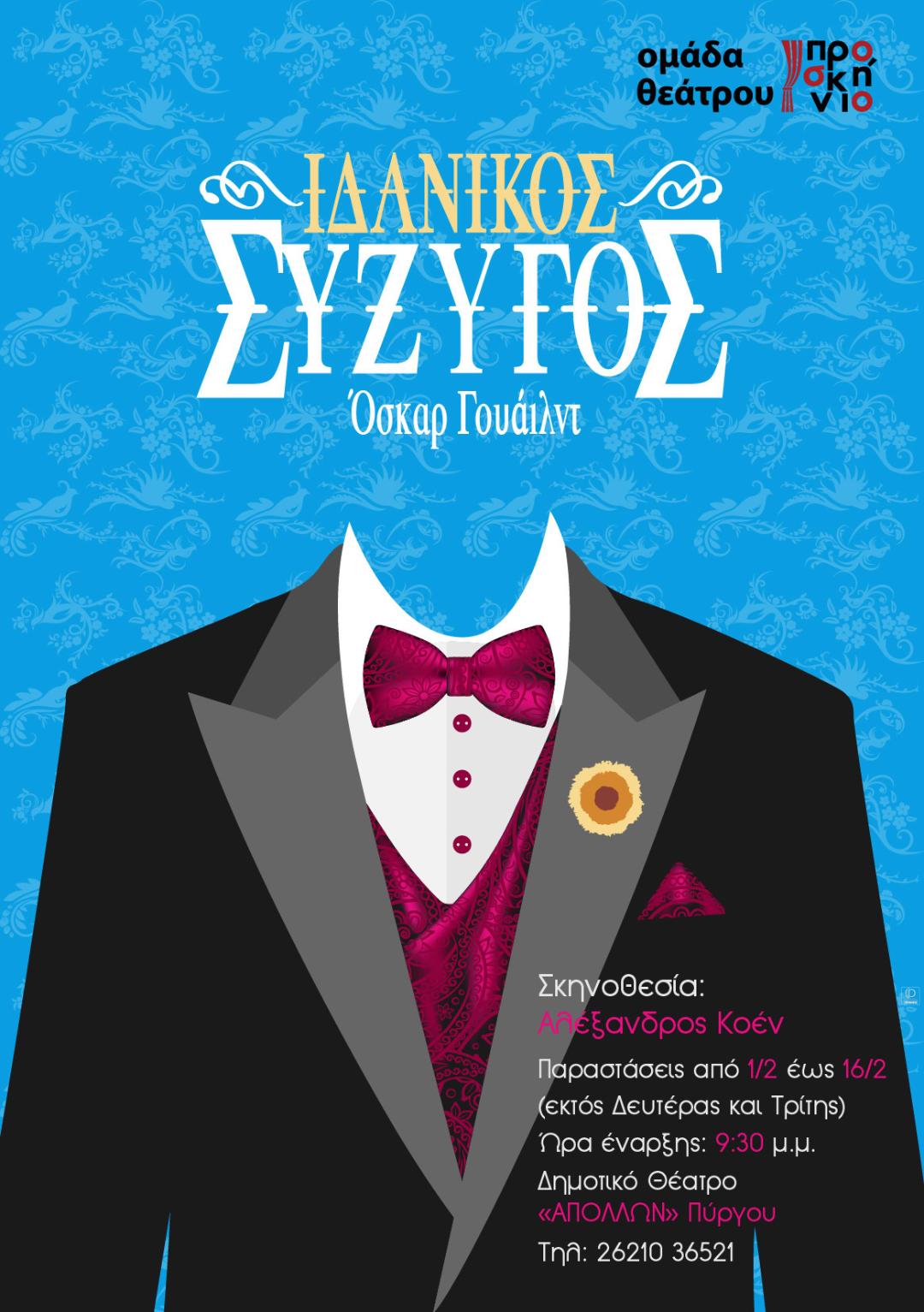 Η ομάδα θεάτρου «ΠΡΟΣΚΗΝΙΟ» συμπληρώνοντας φέτος τα 20 χρόνια της, επιλέγει να παρουσιάσει ένα σπουδαίο έργο ενός εκ των κορυφαίων θεατρικών συγγραφέων του 19ου αιώνα, τον «ΙΔΑΝΙΚΟ ΣΥΖΥΓΟ» του Όσκαρ Γουάϊλντ.