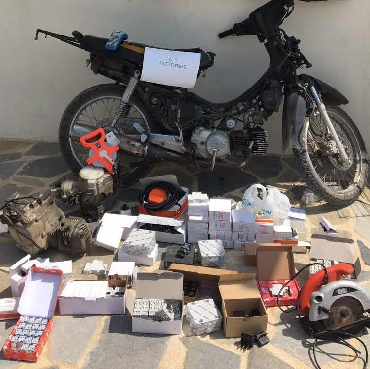 Από την αστυνομική έρευνα που ακολούθησε, προέκυψε ότι, ο 28χρονος τους τελευταίους τρείς μήνες, στα Λεχαινά, στην Ανδραβίδα, στο Βαρθολομιό και στο Παλαιοχώρι Γαστούνης, είχε διαπράξει τρεις κλοπές σε καταστήματα, μια σε οικία και μια σε κτίριο βιολογικού καθαρισμού, απ΄ όπου είχε αφαιρέσει ηλεκτρολογικό εξοπλισμό, ηλεκτρικά εργαλεία, το χρηματικό ποσό των (150) ευρώ, μια μοτοσικλέτα και τρόφιμα.