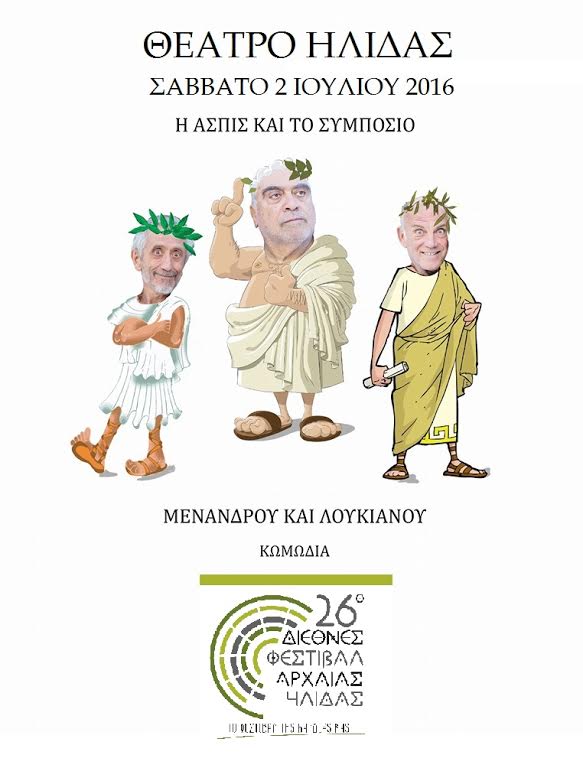 Η παράσταση «Η Ασπίς & το Συμπόσιο» Μένανδρου και Λουκιανού ξεκίνησε το μαγευτικό της καλοκαιρινό ταξίδι που περιλαμβάνει πάνω από 20 προορισμούς σε όλη την Ελλάδα. Για σήμερα Σάββατο 2 Ιουλίου 2016 σταθμός της είναι το 26ο Διεθνές Φεστιβάλ Αρχαίας Ήλιδας, στο Θέατρο Ήλιδας, στις 21:15 το βράδυ.