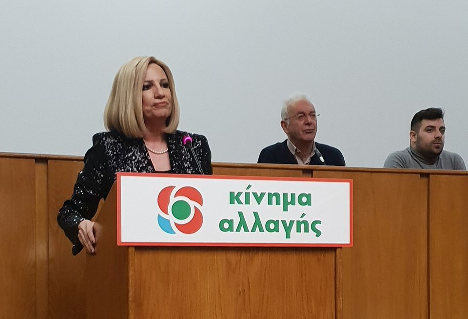 Την Κυριακή 9/2 στις 19.00 το βράδυ, μίλησε σε ανοικτή συγκέντρωση των φίλων και μελλών του Κινήματος Αλλαγής, στο Συνεδριακό της Περιφέρειας στον Πύργο.
