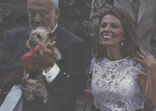 Ο Μιχάλης Γουλανδρής. έφτασε στην εκκλησία για να περιμένει την αγαπημένη του, αγκαλιά με τον αγαπημένο του σκύλο και δεν τον αποχωρίστηκε όπως γράφει το ρεπορτάζ της Εspresso, ούτε κατά τη διάρκεια της τελετής.Ο εφοπλιστής χαρούμενος και συγκινημένος περίμενε την αγαπημένη του έξω από την εκκλησία. Εκείνη έφτασε πανέμορφη φορώντας νυφικού ξένου γνωστού οίκου και συνοδευόμενη από συγγενικό της πρόσωπο.