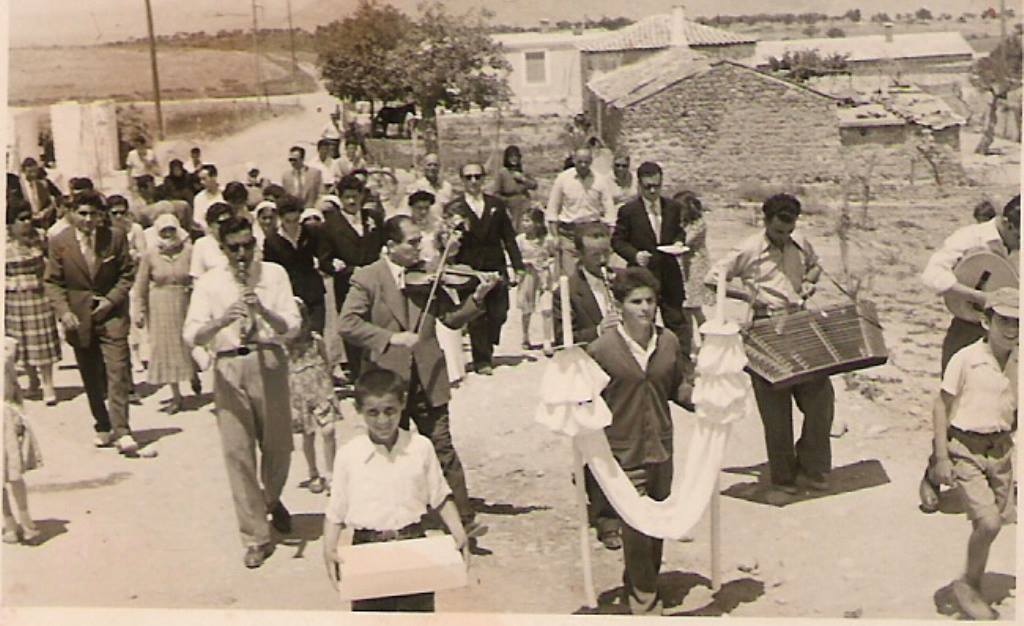 Μπροστά πήγαιναν οι οργανοπαίχτες, ο κλαριντζής και ο λαουτιέρης. Ακολουθούσαν τρία παιδιά με τα κάνιστρα (πανέρια) στο κεφάλι. Το πρώτο κάνιστρο είχε ένα πιάτο κουραμπιέδες και ένα μπουκάλι ποτό. Το δεύτερο είχε το νυφικό και το τρίτο δώρα για τους γονείς και τα αδέλφια της νύφης, συνήθως παπούτσια. Τα παπούτσια της νύφης δεν τα έβαζαν στο κάνιστρο. Τα κρατούσε ένας αδελφός του γαμπρού ή ο κουμπάρος, που θα τα φορούσε ο ίδιος στη νύφη. Ακολουθούσε ο γαμπρός με τους γονείς του και όλο το συμπεθεριό.