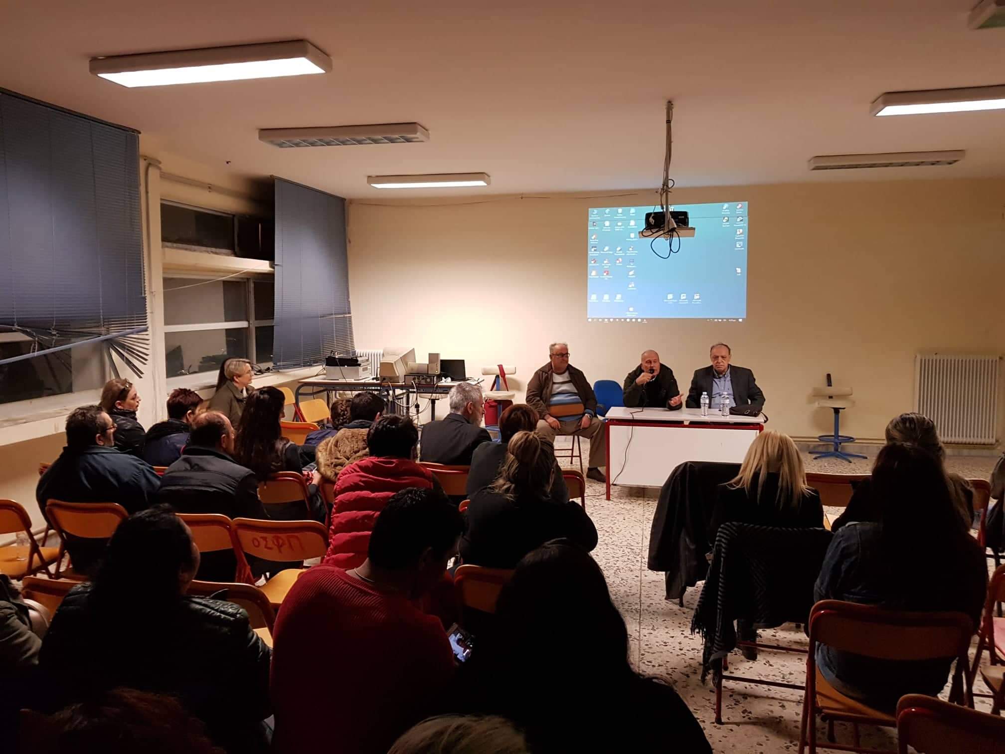 Ο μαθηματικός του Σ.Δ.Ε. Πύργου κ. Λουμιώτης (αριστερά), με τους καλεσμένους: κ. Μάκη Παρασκευόπουλο και Παύλο Αθανασόπουλο, φοιτητές την περίοδο της δικτατορίας και του Πολυτεχνείου