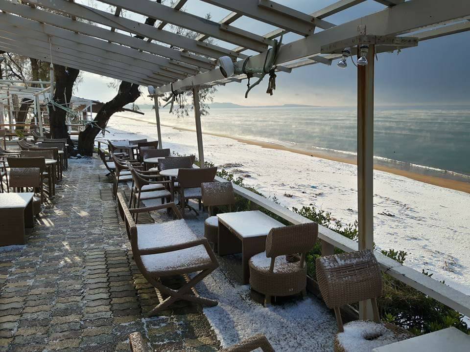 Χιόνια στην παραλία της Κουρούτας. Το χιόνι αντάμωσε το κύμα της θάλασσας. Μαγευτικές εικόνες από τον φίλο Θωμά Μανωλόπουλο.