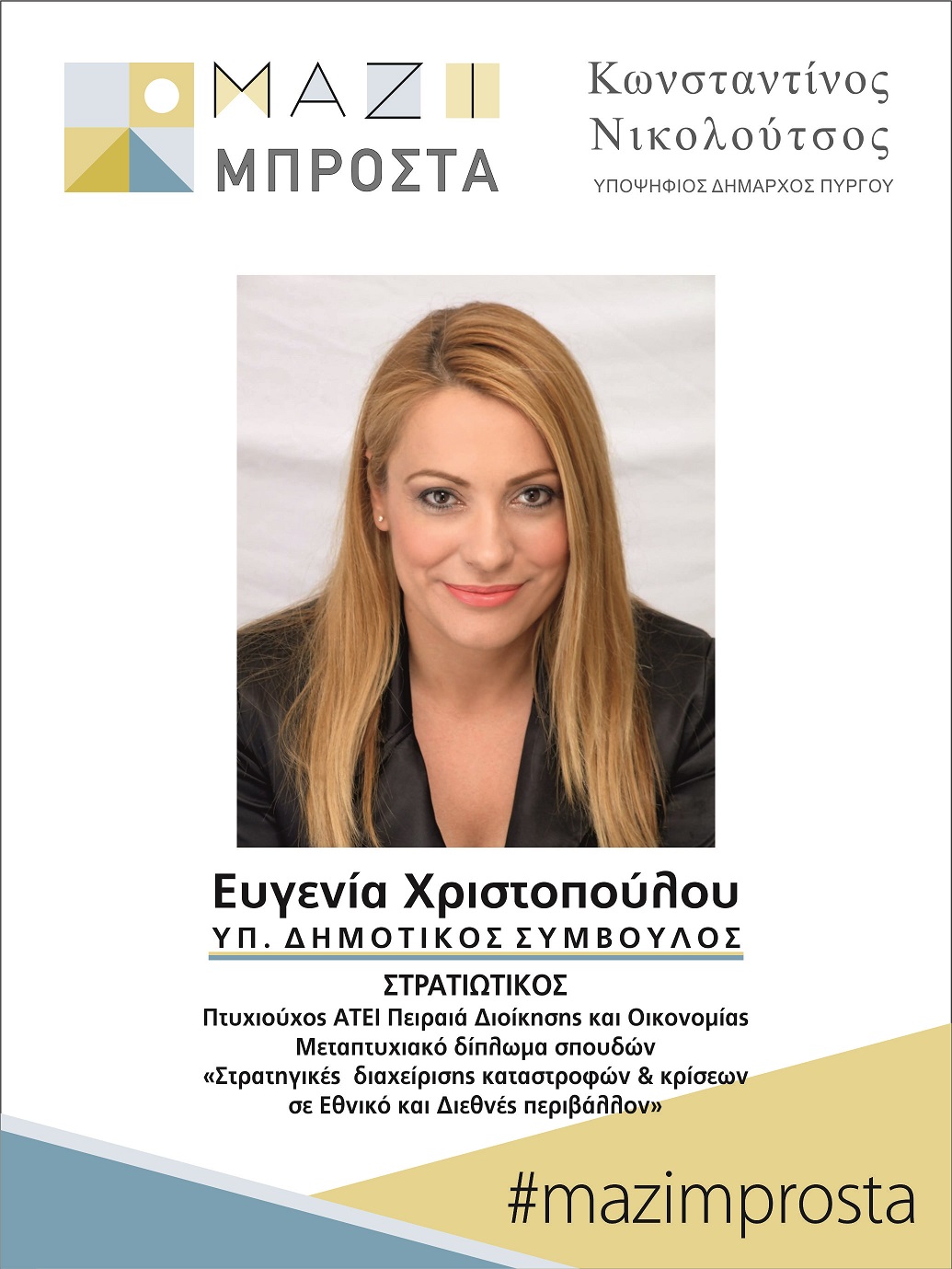 Η Ευγενία Χριστοπούλου γεννήθηκε το 1977 στον Πύργο Ηλείας και είναι το όγδοο παιδί της οικογένειας του εργολάβου οικοδομών Γεωργίου Χριστόπουλου και της Ελένης Χριστοπούλου.Τελειώνοντας το τρίτο Λύκειο Πύργου, σπούδασεστο ΑΤΕΙ Πειραιά στη Σχολή Διοίκησης και Οικονομίαςκαι απέκτησε μεταπτυχιακό δίπλωμα σπουδών στο Καποδιστριακό Πανεπιστήμιο Αθηνών με τίτλο: στρατηγικές διαχείρισης καταστροφών και κρίσεων σε Εθνικό και Διεθνές περιβάλλον. Το 2003 έπειτα από γραπτό διαγωνισμό διορίστηκε στο Στρατό, στο Νομικό σώμα του ΓΕΕΘΑ. Σήμερα φέρει τον βαθμό του Επιλοχία και υπηρετεί από το 2012 στη ΣΕΤΤΗΛ. Μιλάει αγγλικά και γαλλικά.
