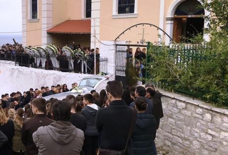 Η πρώτη πράξη του δράματος που βιώνει η Κυπαρισσία και έχει συγκλονίσει το πανελλήνιο, μετά τον τραγικό χαμό τριών νέων παιδιών, διαδραματίστηκε το μεσημέρι της Τρίτης στην κηδεία του 15χρονου Νίκου, από το Ναό Αγίας Τριάδας, όπου η σημαία κυμάτιζε μεσίστια ως ένδειξη πένθους της τοπικής κοινωνίας για το δράμα των τριών οικογενειών. Την εξόδιο ακολουθία τέλεσε ο. Μητροπολίτης Τριφυλίας και Ολυμπίας, ενώ δεκάδες συμμαθητές του με λουλούδια στα χέρια είπαν το τελευταίο αντίο.