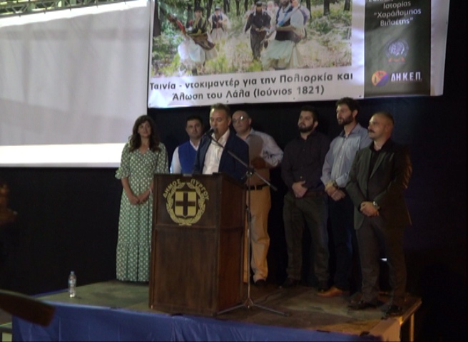 Η εκδήλωση άρχισε με τον ιστορικό και μέλος του συλλόγου καθηγητή Γιώργο Κουρκούτα, ο οποίος συμμετείχε με ρόλο στην ταινία και έχει γράψει το σενάριο. Πάραλληλα ενσάρκωσε και το ρόλο του αφηγητή. Ακολούθησε το μέλος του Συλλόγου Φίλων Ιστορίας “‘Χαράλαμπος Βιλαέτης”‘ Σοφία Δούση η οποία αναφερόμενη στην ταινία επεσήμανε ότι πρόκειται για ένα οπτικοακουστικό αφιέρωμα στους ήρωες εκείνους που ελευθέρωσαν την περιοχή μας.