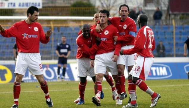 Στην παραπάνω φωτό, σε ματς με τον ΠΑΣ Γιάννινα ενώ έχει σκοράρει (ισοφάρισε σε 1-1 κι έπειτα κέρδισαν 3-1) πανηγυρίζοντας με τον “Φερε”