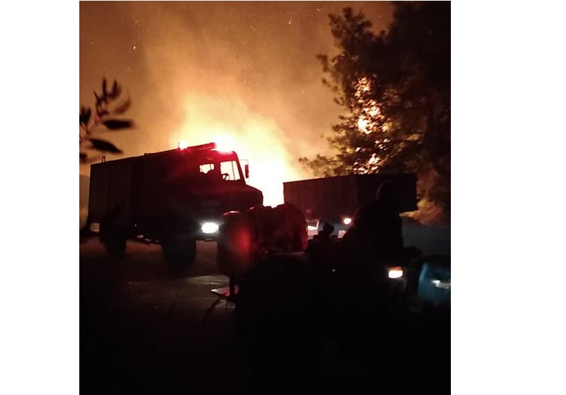 Με την βοήθεια της βροχής η φωτιά τέθηκε υπό μερικό έλεγχο τις πρώτες πρωινές ώρες.
