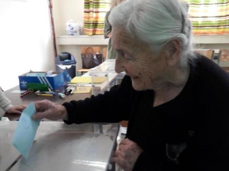 Η Ιουλία Κατσαδήμα είναι αν όχι η μεγαλύτερη, σίγουρα μια από τους μεγαλύτερους σε ηλικία ψηφοφόρους που προσήλθαν στην κάλπη για αυτές τις εκλογές.