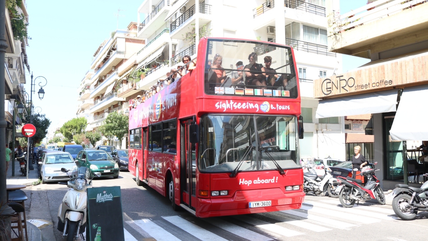 Περισσότερα δρομολόγια των ανοιχτών τουριστικών διώροφων λεωφορείων, τύπου open bus, που μεταφέρουν τουρίστες-επιβάτες κρουαζιερόπλοιων από το Κατάκολο στην πόλη του Πύργου.