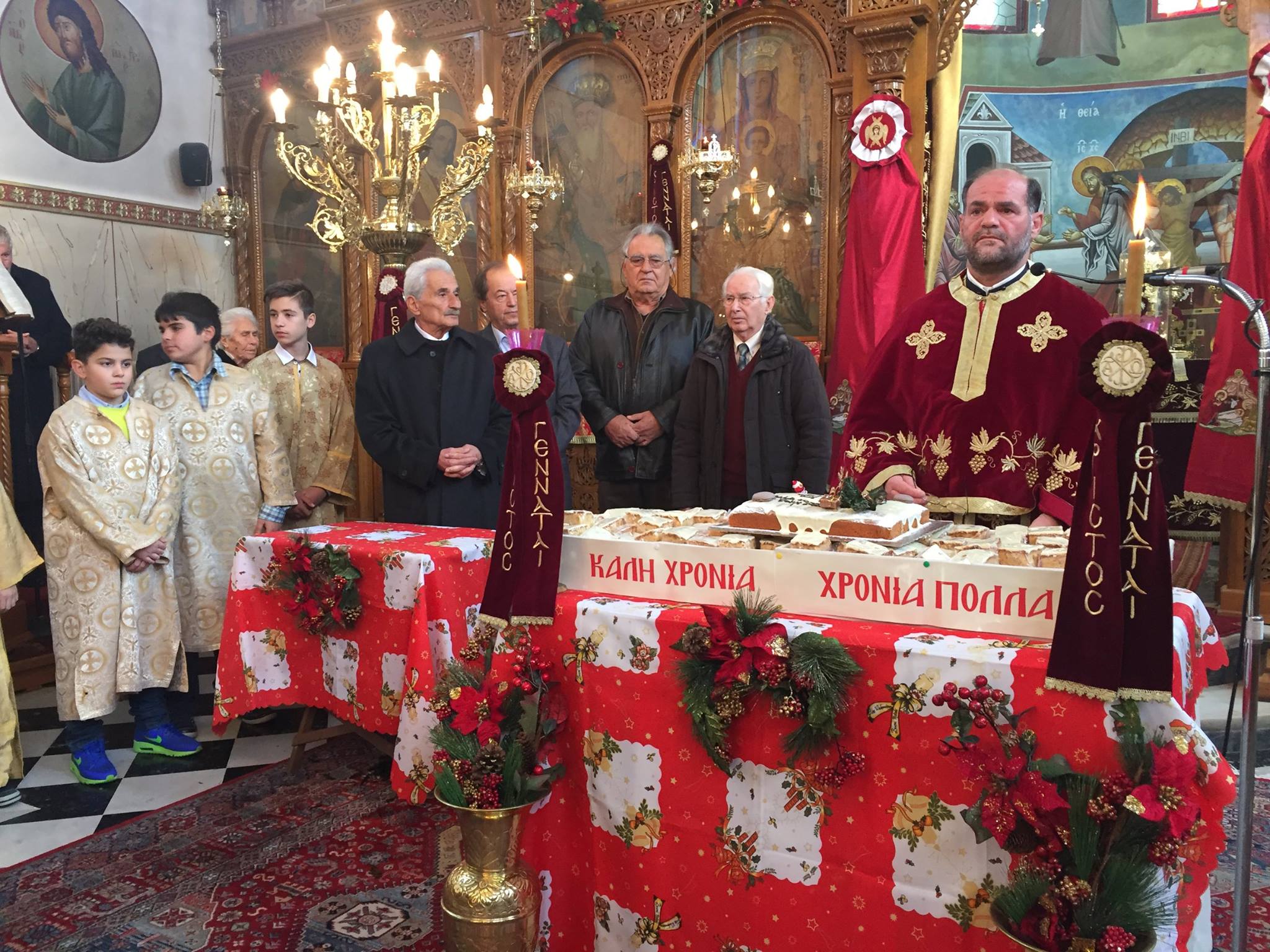 Την πίττα, παρουσία του εκκλησιαστικού συμβουλίου του ιερού Ναού, ευλόγησε ο παρήρ Νικόλαος Κατσιδήμας ο οποίος ευχήθηκε στο εκκλησίασμα καλή χρονιά με υγεία και κοντά στον Θεό.