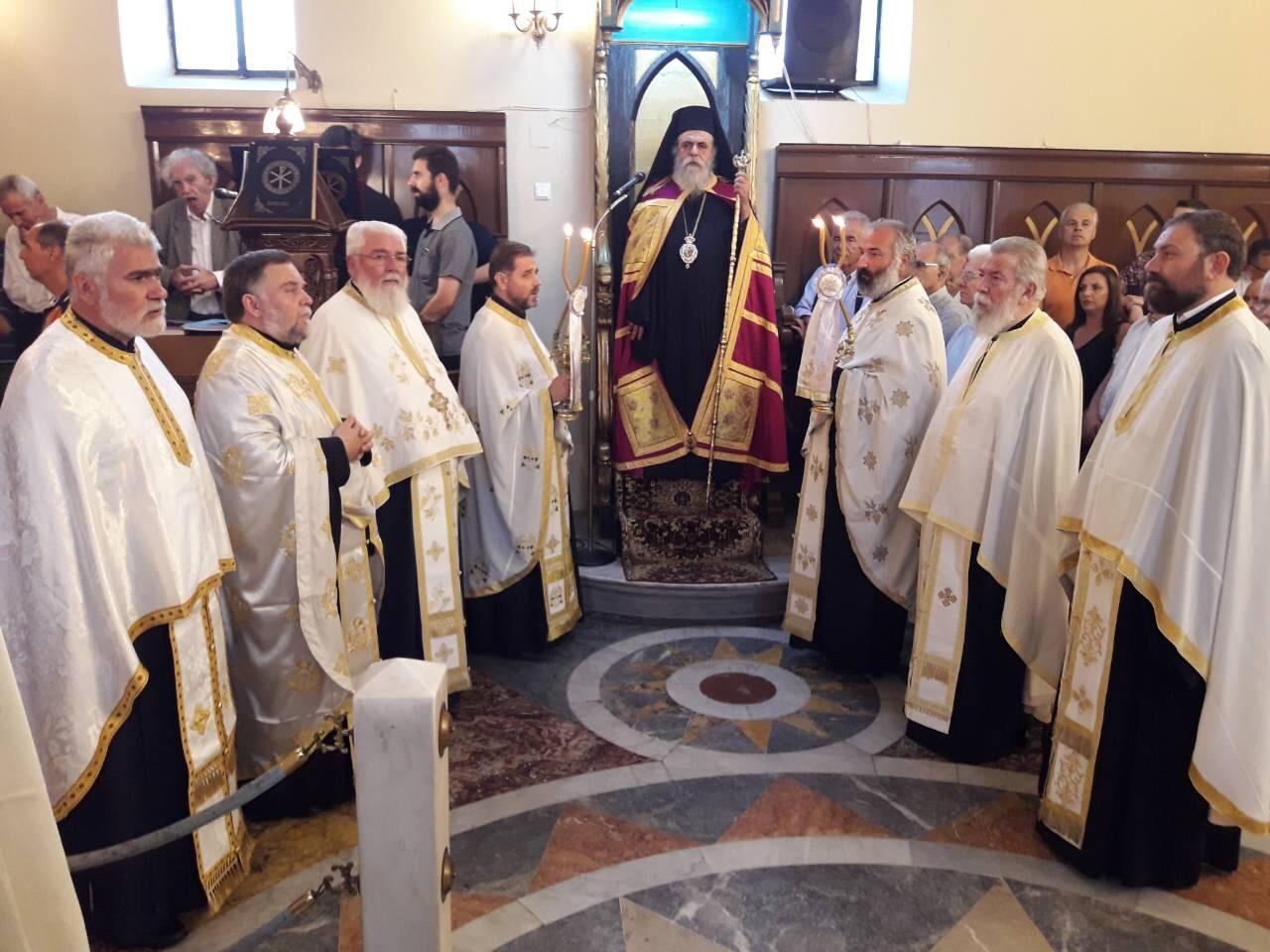 Την κυρία ημέρα της εορτής, τελέσθηκε η Ιερή ακολουθία του Όρθρου μετ’ αρτοκλασιών και εν συνεχεία η Πανηγυρική Θεία Λειτουργία υπό του Ιεροκήρυκος της Ιεράς Μητροπόλεώς μας, Πανοσιολογιωτάτου Αρχιμανδρίτου π. Φιλάρετου Σπανόπουλου, ο οποίος εκήρυξε και τον Θείον Λόγον. Στο τέλος της Πανηγυρικής Θείας Λειτουργίας, ο Προϊστάμενος του Ιερού Ναού π. Βασίλειος Λαγκαδινός, καλωσόρισε και παρουσίασε στο πολυπληθές εκκλησίασμα, το νέο Λαμπαδάριο του Ναού κ. Χαράλαμπο Παφιλιάρη, ευχόμενος παράλληλα τα δέοντα για τα νέα Ιεροψαλτικά του καθήκοντα.
