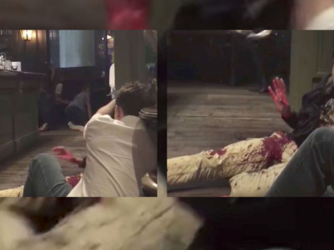 Στο βίντεο της Sun φαίνεται κάποιος να αιμορραγεί, στο πάτωμα μίας παμπ, ενώ γύρω του επικρατεί το χάος. Κάποιος άλλος, πιθανότατα αστυνομικός σύμφωνα με τη βρετανική εφημερίδα, προσπαθεί να τον βοηθήσει.