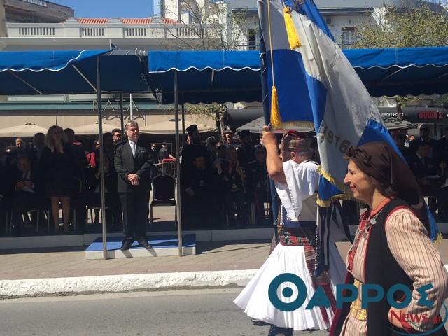Για μια ακόμα φορά η Δημοτική Φιλαρμονική Καλαμάτας «έστειλε» το δικό της μήνυμα, παιανίζοντας το εμβατήριο «Μακεδονία Ξακουστή» κατά τη διάρκειας της παρέλασης της 23ης Μαρτίου στην Καλαμάτα. Αξίζει δε, να σημειωθεί ότι την κυβέρνηση εκπροσωπούσε ο Υπουργός Εξωτερικών, βουλευτής Μεσσηνίας, Γιώργος Κατρούγκαλος, ο οποίος …υποδέχθηκε με αμηχανία το συγκεκριμένο γεγονός, ενώ μεγάλος ήταν ο ενθουσιασμός από το πλήθος που παρακολουθούσε την παρέλαση , ο οποίοι καταχειροκρότησαν τη δημοτική φιλαρμονική Καλαμάτας.