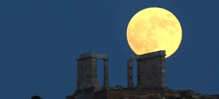 Το εντυπωσιακό φεγγάρι «ανέτειλε» στο Ναό του Ποσειδώνα, στο Σούνιο, χαρίζοντάς μας, μαγικές εικόνες.