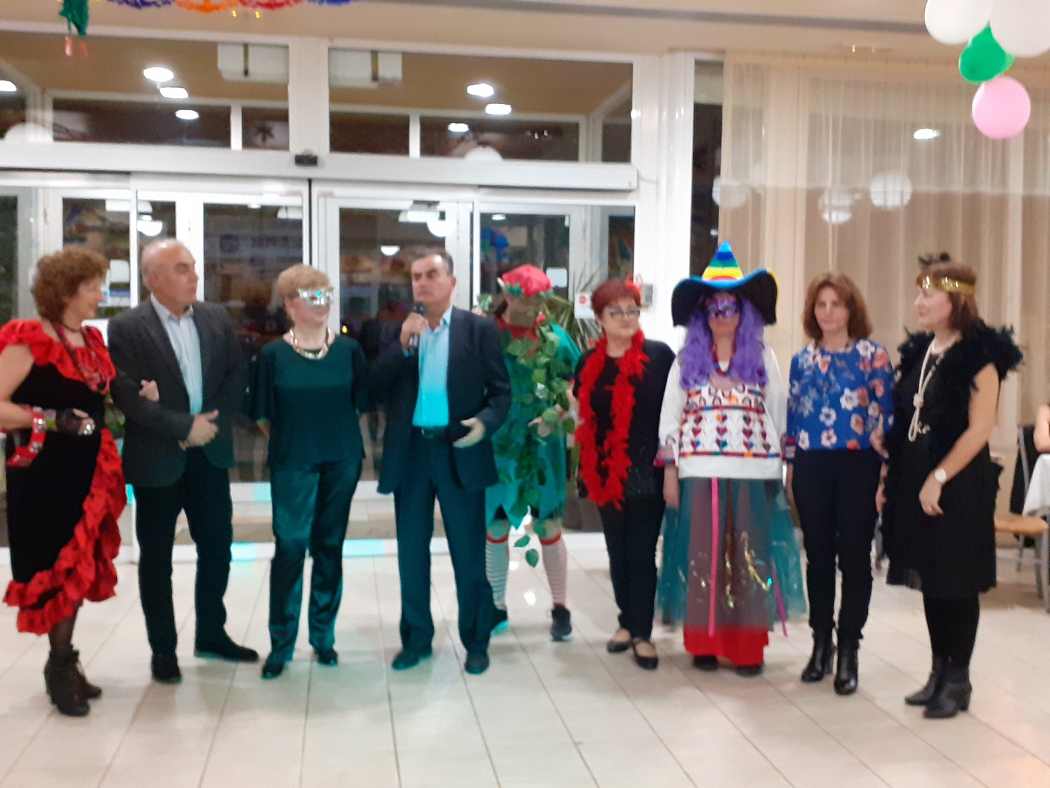 Υποδοχή, τοποθέτηση σε τραπέζια, με σοκολάτες, σερπατίνες. Όλοι με όμορφες αποκριάτικες φορεσιές (πλην του προέδρου που δεν επείσθη και φέτος…) έδιναν ένα χαρούμενο τόνο στην εκδήλωση.