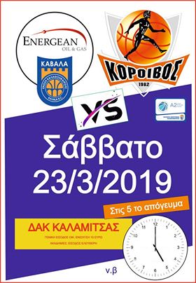 Για την 23η αγωνιστική του πρωταθλήματος μπάσκετ Α2 Εθνικής, το Σάββατο ο ΙΕΚ Σμαρνάκη Κόροιβος Αμαλιάδας αγωνίστηκε εκτός έδρας στην Καβάλα με την τοπική ομάδα και μετά από αμφίρροπο ματς με πολλές αυξομειώσεις, ηττήθηκε με 68-64 σκορ.