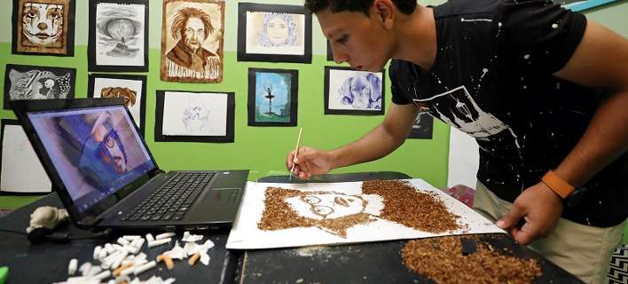 Σε ένα μικρό στούντιο γεμάτο από άδεια πακέτα τσιγάρων, στη δεύτερη μεγαλύτερη πόλη της Αιγύπτου, την Αλεξάνδρεια, ο Abdelrahman al-Habrouk κάθεται πάνω από ένα φύλλο λευκού χαρτιού και δημιουργεί πορτρέτα με καπνό.