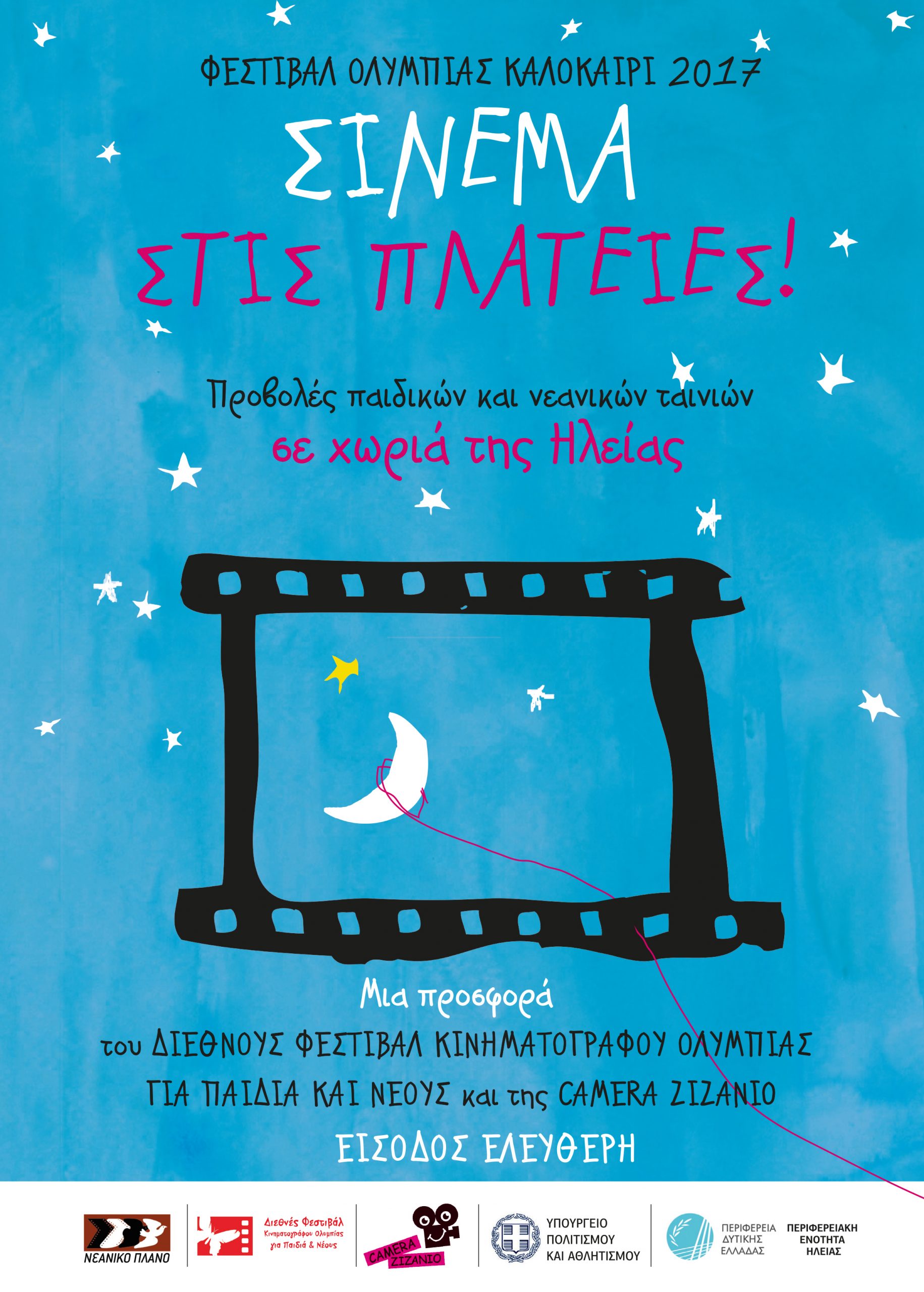 Με μεγάλη επιτυχία συνεχίζονται για τέταρτο συνεχόμενο καλοκαίρι οι open air προβολές του Διεθνούς Φεστιβάλ Κινηματογράφου Ολυμπίας για Παιδιά και Νέους σε πλατείες, παραλίες, σιδηροδρομικούς σταθμούς, προαύλια σχολείων, πνευματικών κέντρων, εκκλησιών και άλλους χώρους. Συνολικά έχουν πραγματοποιηθεί ή είναι προγραμματισμένες 28 προβολές σε ισάριθμες πόλεις και χωριά του νομού Ηλείας με τη συνεργασία τοπικών φορέων (κοινότητες, πολιτιστικοί, αθλητικοί και άλλοι σύλλογοι).