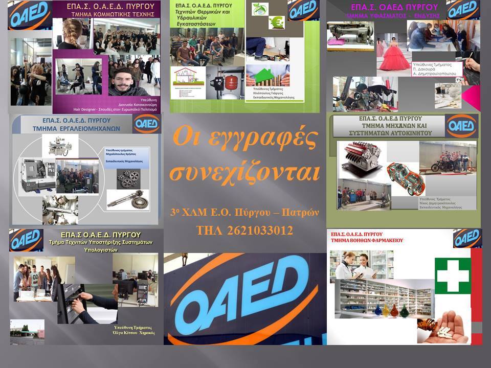 Όλες οι ειδικότητες για το ΕΠΑΣ ΟΑΕΔ Πύργου για το σχολικό έτος 2017-2018