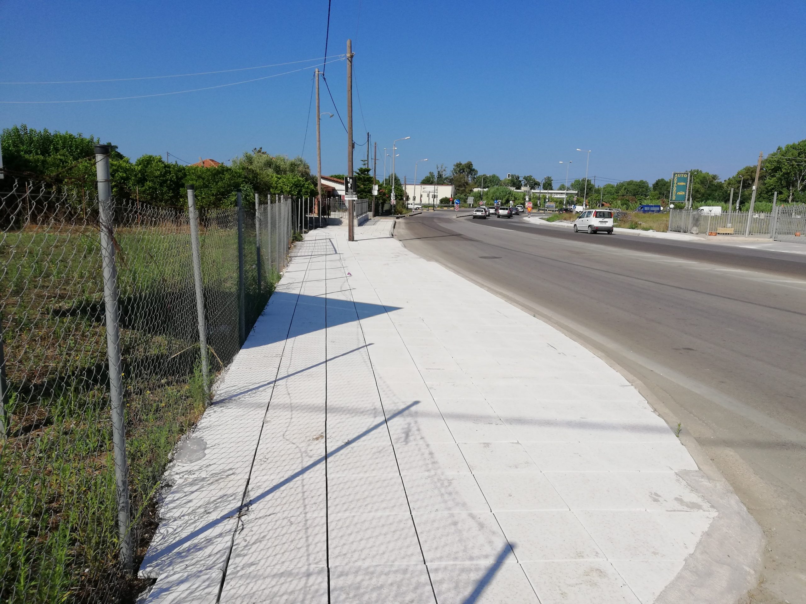 Το έργο διαμόρφωσης της εν λόγω σύνδεσης με τα υπάρχοντα πεζοδρόμια, που θα φτάνουν πλέον έως τους φωτεινούς σηματοδότες της διασταύρωσης με την Εθνική Οδό, είναι συνολικού κόστους 305.000 ευρώ.