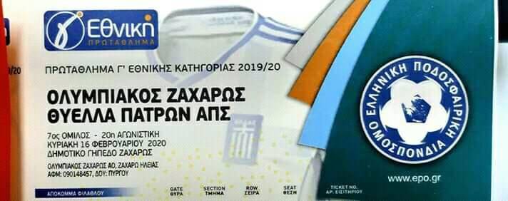 Άλλη μια νίκη γοήτρου ήθελε να προσθέσει στο ενεργητικό του ο Ολυμπιακός Ζαχάρως υποδεχόμενος τη Θύελλα Πατρών για την 20η αγωνιστική στον 7ο όμιλο, αλλά ηττήθηκε τελικά με το ευρύ 0-3 (κι έτσι, μια εβδομάδα μετά τη νίκη τους στον Πύργο σε βάρος του Πανηλειακού, δεν μπόρεσαν να δώσουν συνέχεια στα θετικά αποτελέσματα). Με την πατρινή ομάδα αντίστοιχα, να διατηρεί πλέον ελπίδες ότι στα προσεχή έξι ματς που απομένουν ως το φινάλε να μπορέσει να περάσει πάνω από τη ζώνη υποβιβασμού και να μείνει στην κατηγορία.