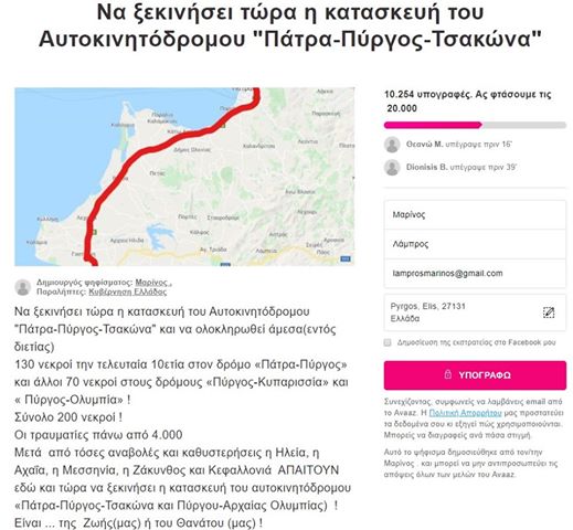 Η διαδικτυακή διαμαρτυρία συλλογή υπογραφών Ψήφισμα θα συνεχιστεί μέχρι ξεκινήσουν οι εργασίες κατασκευής στο σύνολο του Αυτοκινητοδρόμου …