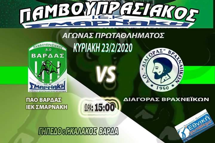 Για την 21η μέρα του πρωταθλήματος Γ’ Εθνικής (Τέταρτης Κατηγορίας πλέον) στον 7ο όμιλο, ο ΠΑΟ Βάρδας πέτυχε νέα νίκη, αυτή τη φορά επί του Διαγόρα Βραχνεΐκων με σκορ 3-0 και κάνοντας έτσι το πιο αποφασιστικό βήμα για την εξασφάλιση της παραμονής στην κατηγορία για μια ακόμα χρονιά.