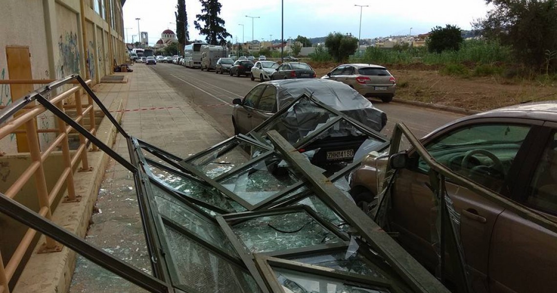 Σύμφωνα με το patrasevents.gr, μεγάλη κατασκευή του κλειστού κολυμβητηρίου, στην πίσω πλευρά των εγκαταστάσεων, αποτελούμενη από σίδερα και τζάμια, υποχώρησε λόγω των δυνατών ανέμων που έπνεαν.